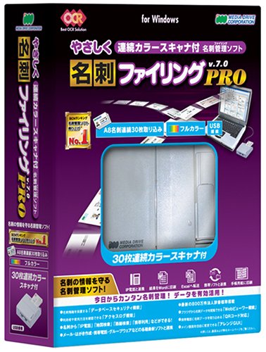 やさしく名刺ファイリング PRO v.7.0は、連続カラースキャナ付きで名刺を簡単にデジタル化。自動分類機能やデータ管理が充実しており、使いやすさを追求したソフトウェアです。