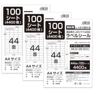 エコスロ ラベルシール A4 44面 (ラベルサイズ : 48.3×25.4mm)【 A4 300シート : 13200面 】強粘着 マット紙 インクジェットプリンター/レーザープリンター 対応【JAN ラベル 対応】