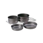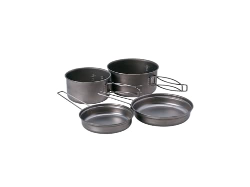 スノーピークのチタン製軽量パーソナルクッカーセット。スタッキングポット×2、フタ×2付き。キャンプやアウトドア、登山、防災に最適のアイテムです。