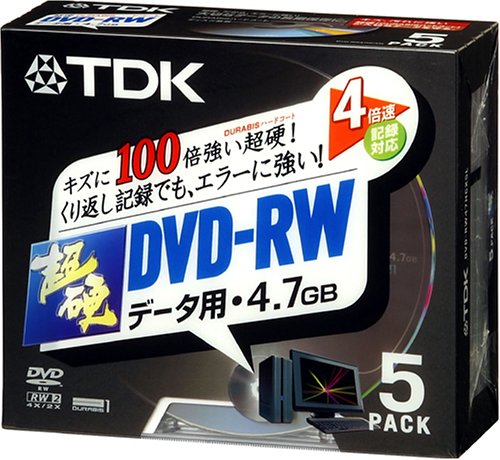 TDK 超硬DVD-RWデータ用は、2-4倍速対応のガンメタリックレーベルを採用した5枚パックです。耐久性があり、データの書き込み・消去が可能で、信頼性の高いメディアです。