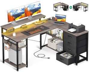AODK ゲーミングデスク 引き出し4杯付き パソコンデスク コンセント付き l字デスク デスク 机 幅135*110 pcデスク 棚付き desk 収納 オフィスデスク 仕事用 在宅勤務 組立簡単 ホワイト
