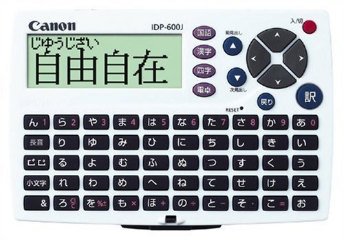 CANON ポケット辞書 IDP-600Jは、豊富な辞書データを搭載し、持ち運びに便利なサイズ。英和・和英辞典に加え、ビジネス用語や学習コンテンツも充実。高精度な音声発音機能も搭載しています。