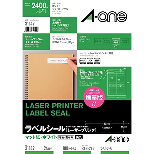 エーワン ラベルシール レーザー A4 24面 100シート 31149は、高粘着性と鮮明な印刷品質が魅力のラベルシールです。業務用や個人用に最適で、使い方も簡単。手軽にラベル作成が可能です。