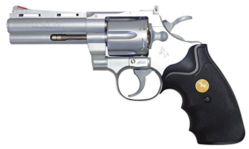 クラウンモデルのホップアップエアリボルバーNo.13 COLTパイソン4インチは、シルバー仕上げで10歳以上対象のエアソフトガンです。リアルな外観と操作感が特徴で、ホップアップ機能により精度も向上しています。