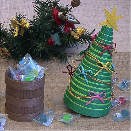 紙バンド手芸用ホビーテープのトライアルキット、クリスマスツリーの小物入れキットです。手軽に楽しめるおしゃれな手芸アイテムで、クリスマスを彩る素敵な小物作りに最適です。