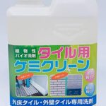 植物性バイオ洗剤【タイル用ケミクリーン】は、外床・外壁タイルの水垢、排気ガス、カビ、青藻などの汚れを効果的に落とします。500mlのサイズで、環境に優しい成分を使用しています。