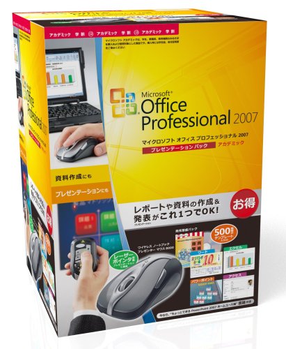 Microsoft Office 2007 Professional アカデミック プレゼンテーションパックは、文書作成、表計算、プレゼンテーション作成をサポートする旧商品です。メーカー出荷終了およびサポートも終了しています。