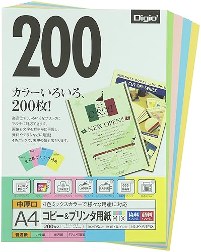 ナカバヤシ コピー&プリンタ用紙 A4カラーミックス HCP-A4MXは、多彩なカラーが楽しめる高品質なコピー用紙です。印刷に最適で、鮮やかで滑らかな仕上がりが特徴です。