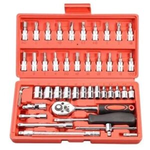 レッド ソケットレンチセット 46点 工具 1/4 プラス マイナス ヘックス トルクス 六角ソケット ラチェット フレキシャフト 自動車 整備 DIY 家具組み立て バイク 自転車 ロードバイク メンテナンス 車載工具 非常用