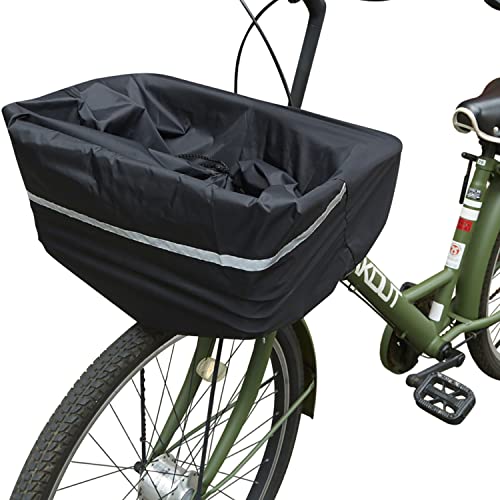 大きい荷物も安心な巾着型のキアーロ前かごカバー。ブラックのデザインで、大容量の安全バスケットカバーは雨の日に簡単にかぶせられ、防水加工が施されています。大型カゴにも対応しています。