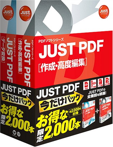 JUST PDF 今だけパックは、PDF編集、作成、変換機能を搭載したソフトウェアです。新規購入や更新の際に特別価格で提供されるキャンペーンが特徴で、効率的な文書管理を実現します。