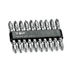 トップ工業の電動ドリル用ドライバビット、マグネットキャッチ付きのNo.2タイプ。全長65mm、10本入りで、土木や建築に最適な高品質の日本製工具です。モデル番号はDB2-6510。