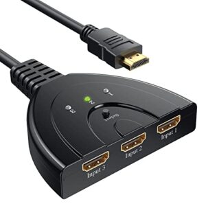 HDMI切替器、Vilcome 分配器 セレクター 3入力1出力 1080p/3D対応金メッキコネクタ搭載 電源不要 手動 Chromecast Fire TV Stick Xbox One ゲーム機 レコーダー パソコン PS4 PRO PS5動作確認 液晶テレビ TV モニターなどの対応 在宅勤務(メス→オス)
