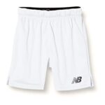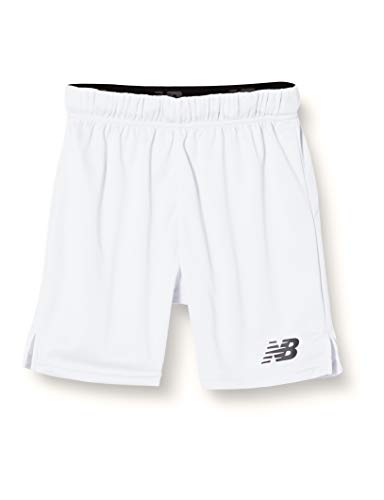 ニューバランスのキッズ用ショートパンツ。ゲームパンツとして最適で、快適な着心地を提供。カラーはホワイト(WT)、日本サイズ130相当。アクティブな子供にぴったりのデザイン。