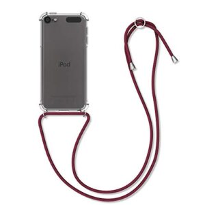 kwmobile Apple iPod Touch 6G / 7G (6代目・7代目)対応 ケース – クリアケース ショルダー ストラップ付 落下防止 TPU – 透明/ダークレッド