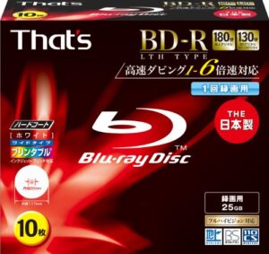 太陽誘電製 BD-Rビデオ用 6倍速180分25GB ハードコート仕様 ワイドプリンタブル 5mmPケース10枚入 BR-V25WWY10SG