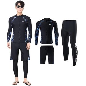 [Nesseo] ラッシュガード メンズ セット 水着 ラッシュレギンス 長袖 前開き サーフパンツ 3点セット スイムウェア スイム シャツ 水陸両用 日焼け予防 速乾 UVカット プール 海 サーフィン W036M-blk-2XL