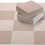 サンコー三つ葉のタイルカーペットは、日本製で撥水・消臭機能を持つ50枚セット。サイズは25×25cmで、ずれない設計のため安定感があります。おくだけ吸着タイプで、洗えるためお手入れも簡単です。