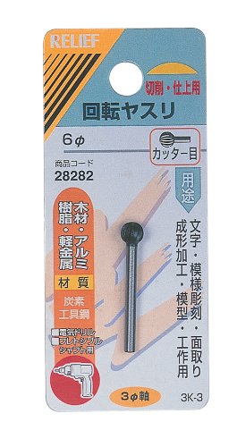 イチネンアクセスのリリーフ(RELIFE)回転ヤスリは、木材や軽金属用のカッター目で直径6mmのサイズです。精密な加工が可能で、さまざまな工作に最適です。
