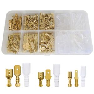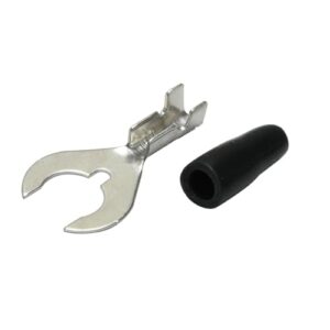 エルパ差込形接続端子 FVDDFM2-250Aは、ブルー色で22.0mmのサイズ、専用タブ厚0.8mmです。より線対応範囲は1.65~2.63㎟で、10個入りのパッケージです。