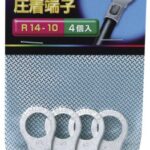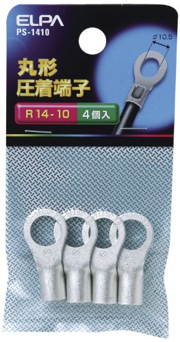 エルパ(ELPA)の丸端子(R14-10)は、外形32.8mm、適合より線径φ3.65~4.62mm、断面積10.52~16.78㎟で、4個入りのPS-1410です。