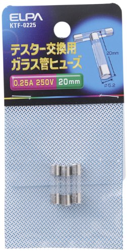エルパ (ELPA) テスター用ヒューズ KTF-0225は、250V 0.25A対応のガラス管ヒューズ。サイズは20mm×φ5.2で、3本入り。テストや修理時に便利。