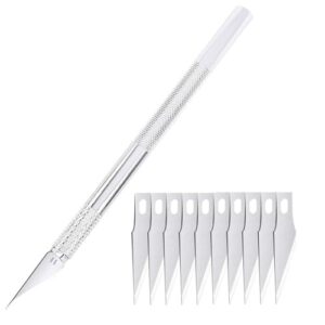 EDu カッターナイフ彫刻ナイフ キャップ付き+替刃10枚 高硬度替刃式彫刻刀 手彫りナイフ アルミ合金ハン アートナイフ シルバー