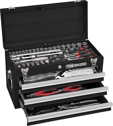 トネ(TONE) ツールセット TSA350BKは、差込角9.5mm(3/8″)のブラック仕上げで、72点のツールが含まれています。高品質な工具が揃い、様々な作業に対応可能です。