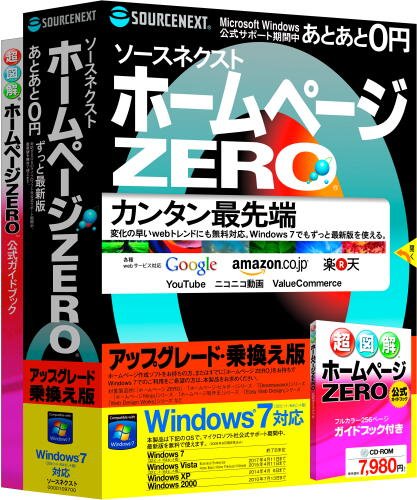 ソースネクスト ホームページZERO アップグレード・乗換版は、Windows7に対応したウェブ作成ソフトで、初心者でも簡単にホームページを作成できます。ガイドブックが付属し、使い方をサポートします。