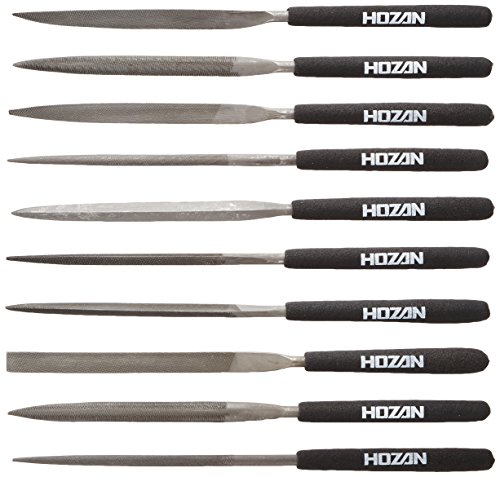 ホーザンのヤスリセット K-215は、丸、半丸、平、三角、角、片刃、楕円、槍型、刀刃の10本組で、様々な作業に対応します。精密な仕上げや加工に最適なツールです。