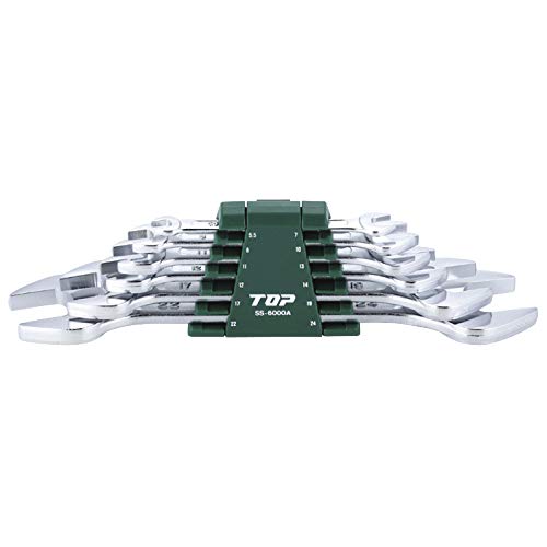 トップ工業のライナー スパナセット SS-6000Aは、6丁組の軽量薄型デザインで、持ち運びに便利なホルダー付き。日本製で、精密な作業に最適です。
