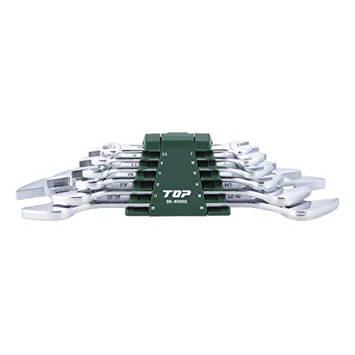 トップ工業のライナースパナセットSS-6000Bは6㎜から24㎜のサイズが揃った6丁組。軽量かつ薄型で収納にも便利なホルダー付き。品質は日本製、燕三条で生産されています。
