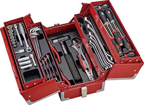 トネ ツールセット TSA3309は、54点の工具が揃った便利なセットです。色はレッドで、主に家庭や軽作業に適した構成になっています。耐久性に優れ、使いやすいデザインが特徴です。