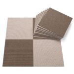 サンコーのタイルカーペットは、25×25cmのブラウンセット20枚組。撥水・消臭・洗える仕様で、おくだけ吸着タイプでずれにくいのが特徴です。ジョイントマットとしても使えます。