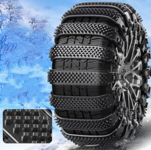 タイヤチェーン 非金属 車用タイヤチェーン 自動車 10本 滑り止めチェーン 雪道 脱出グッズ ジャッキアップ不要 ワンタッチ簡単装着 緊急脱出 滑り止め サイズ調節可能 防災応急用 冬季の必需品 雪対策 (黒)
