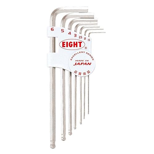 エイト 六角棒スパナ テーパーヘッド セミロング セット TMS7は、強度と耐久性に優れた工具です。テーパーヘッドデザインで狭い場所でも効果的に作業ができ、多様なサイズが揃い、整備やメンテナンスに最適です。