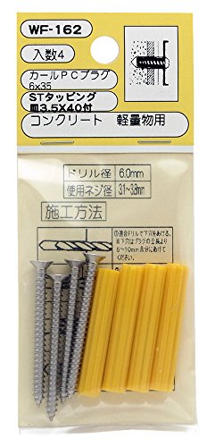 和気産業(Waki Sangyo) コンクリート 4個入 軽量物用 カールPCプラグ 取付け工事 穴あけ アングル 黄 #6×35 WF-162の製品情報