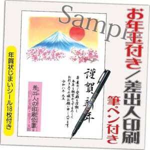 年賀状 2026 お年玉付き 年賀 はがき【4枚 筆ペン付き】午年 うま年 年賀状じまいシール付 印刷 プリント 4枚 差出人なし(デザイン:HA055)
