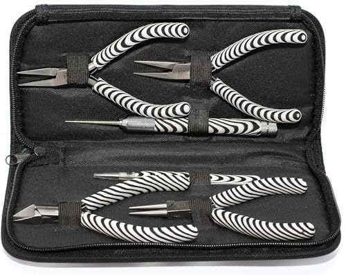 Beadsmithゼブラプリントペンチ5インチツール6ピースキット。ジュエリー製作に必要な多彩なツールをジッパーポーチ付きで揃えています。