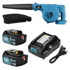 Reoben ブロワ 互換マキタ バッテリー18v互換 専用 マキタ互換 充電式 コードレスブロワー互換 BL1850B付き 電動工具 ブロワー 充電式 庭掃除 洗車 一台二役 集じん機能付き 集塵 掃除機合わせて 【4点セット】青