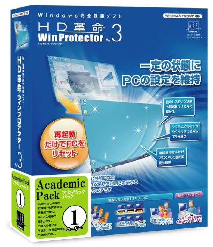 HD革命/WinProtector Ver.3 アカデミック版は、データ保護とシステムの安全性向上のためのソフトウェアです。学生向けに特別価格で提供され、簡易な操作でデータのバックアップや復元が可能です。