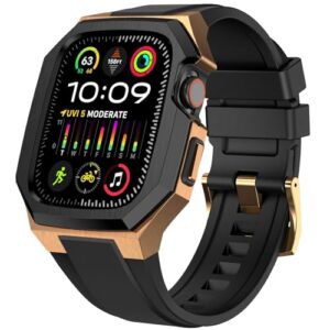 OOULOVE コンパチブル アップルウォッチ バンド 44mm 45mm 49mm ステンレス鋼 ケース付き 頑丈なメンズ フッ素ゴムベルド 一体型 スポーツバンド Apple Watch バンド Series 9/8/7 45mm SE2/6/5/4/SE 44mm Ultra 49mm対応 耐衝撃性 落下防止 装着簡単 Watch 保護 カバー デラックス