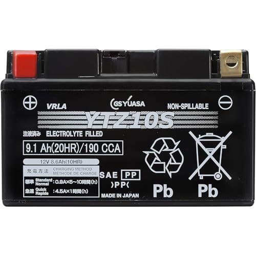 GSYUASA VRLA YTZ10Sはバイク用の制御弁式シールド型バッテリーです。優れた耐震性と長寿命を持ち、YT/YTZ/YTX/GTシリーズに適合します。メンテナンスフリーで手軽に使えます。