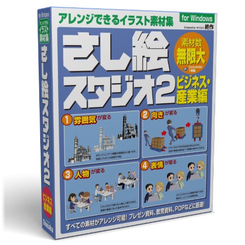 さし絵スタジオ2ビジネス・産業編Win版は、ビジネスシーンに特化したイラスト制作ソフトです。多彩なテンプレートとクリエイティブツールで、プレゼン資料や報告書のビジュアルを簡単に作成可能です。