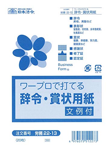 日本法令 労務 22-13は、辞令や賞状に最適なB6サイズの用紙です。ワープロで簡単に印刷でき、ビジネスシーンでの正式な書類作成に役立ちます。品質も高く、信頼性のある製品です。