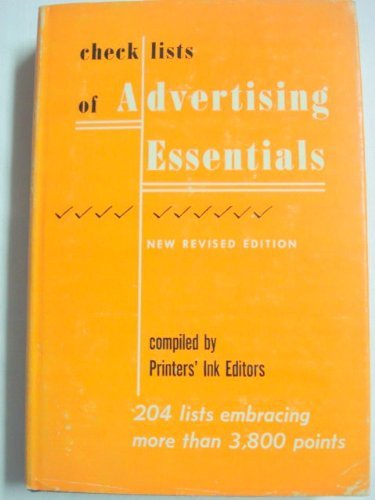 広告必需品チェックリスト1950年版には、パンフレット、ポスター、名刺、看板、広告用紙、インク、クライアントへの提案書などが含まれています。