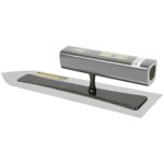 金長(Kinkanechou)の仕上鏝は、0.3mm厚のステンレス製で、黒塗の角柄を持ち、225mmのサイズです。壁の仕上塗りに最適で、耐久性と精度を兼ね備えた工具です。