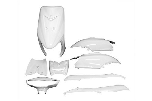 バイクパーツセンターのジョグエボ純正タイプ外装セットは、ホワイトの塗装済みカウル8点セットです。ヤマハリモコンジョグ/ZRエボリューションに対応。型番SA16J用。