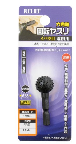 イチネンアクセス RELIEF(リリーフ) 軸付き先端 六角軸 回転ヤスリ イバラ目 27953は、球型φ16の形状で、精密な研磨や仕上げ作業に最適です。六角軸対応で、各種電動工具に取り付けて使用できます。