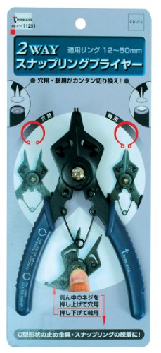 イチネンアクセスのスリーアキシス 2WAY スナップリングプライヤー 11251は、12~50mmのリングに適用可能。使いやすいデザインで、配管作業に最適な工具です。